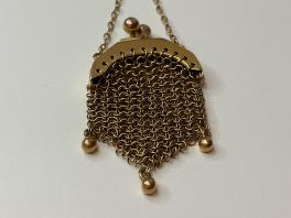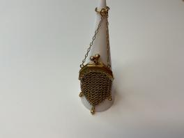 UN PENDENTIF PORTE MONNAIE COTE DE MAILLE EN OR JAUNE 18K 750 MILLIEMES. POINCON CHARANCON. HAUTEUR: 3,5 CM. POIDS BRUT: 4.8 G