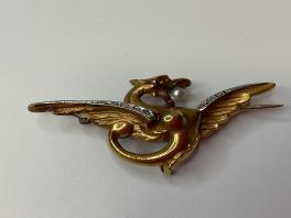 Lot Objet LOT 19 - BROCHE OR JAUNE, DRAGON, PERLE. PB: 2.3 g