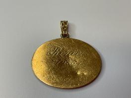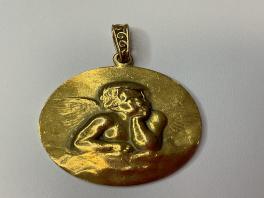 UN MEDAILLON EN OR JAUNE 18K 750 MILLIEMES A DECOR D'ANGELOT AU VERSO RENEE 1935. POIDS BRUT: 3.44 G