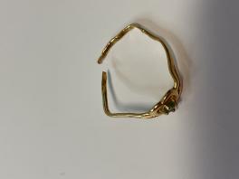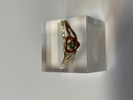 BAGUE EN OR JAUNE 18K 750 MILLIEMES A DECOR DE COEUR CENTREE D'UNE EMERAUDE (FENDUE). POIDS BRUT: 1 G