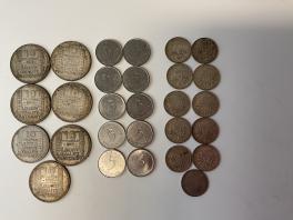 LOT DE PIECES EN ARGENT: - 6 PIECES DE 10 FRANCS - 1 PIECE DE 2 FRANCS DE 1887 - 5 PIECES DE 2 FRANCS - 13 PIECES DE 1 FRANCS - 11 PIECES DE 0,50 CENTIMES POIDS BRUT DE L'ENSEMBLE: 211.71 G ON Y JOINT 10 PIECES DE 0,05 CENTIMES ET UNE PIECE DE 10 FRANCS