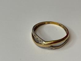BAGUE EN OR JAUNE 18K 750 MILLIEMES FORMEE DE DEUX ANNEAUX ENTRELACES, SERTIE DE PETITS BRILLANTS (MANQUE). TDD: 55. POIDS BRUT: 1.87 G