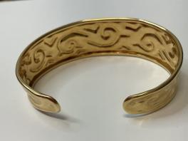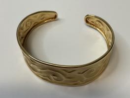 BRACELET JONC EN OR JAUNE CISELE 18K 750 MILLIEMES, ORNE DE VOLUTES. POINCON TETE D'AIGLE. POIDS BRUT: 8.84 G. LONGUEUR: 6 CM