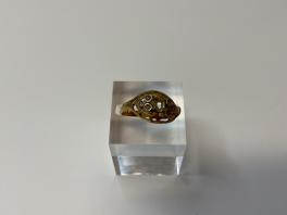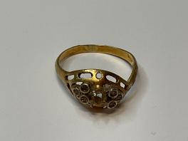 UNE BAGUE EN OR JAUNE 750 MILLIEMES SERTIE DE BRILLANTS (ACCIDENTS, MANQUES). POIDS BRUT: 2.72 G. TDD: 55