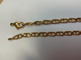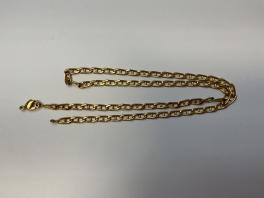 PENDENTIF CROIX DE LORRAINE EN METAL DORE. POIDS BRUT: 0.3 G. HAUTEUR: 2 CM. ON Y JOINT UNE CHAINE MAILLE GRAIN DE CAFE EN METAL DORE. LONGUEUR: 25 CM